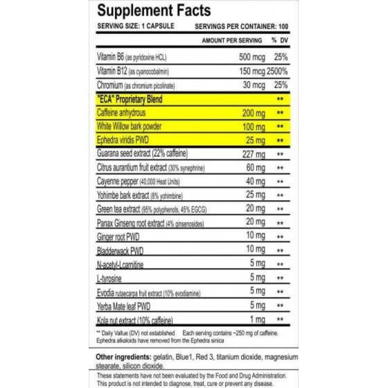 - Johimbiini, kofeiini